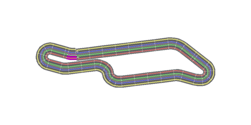 Unser Norisring hat ein Länge von 10,54m auf Spur 1 bis 9,06m auf Spur 4.
