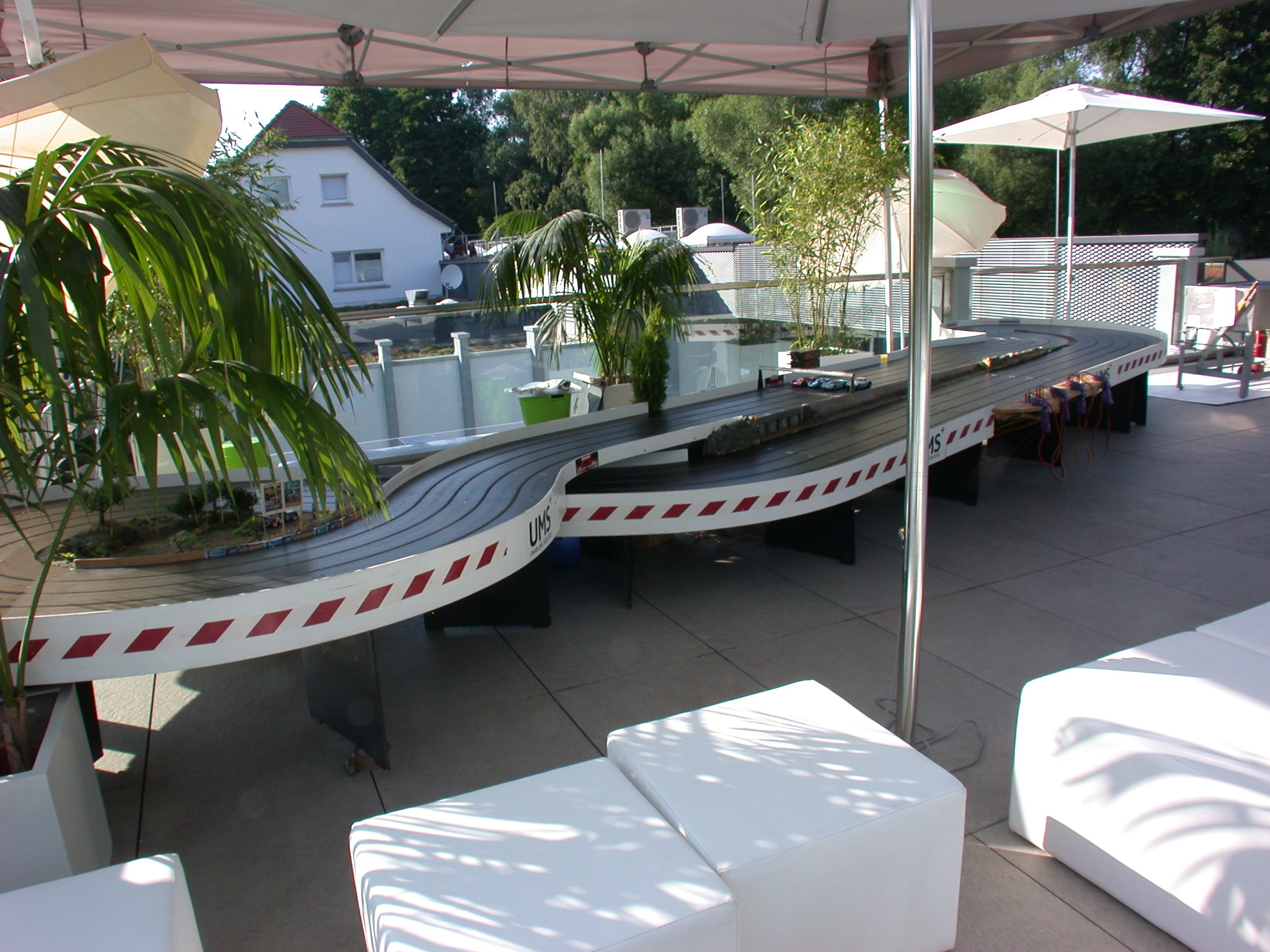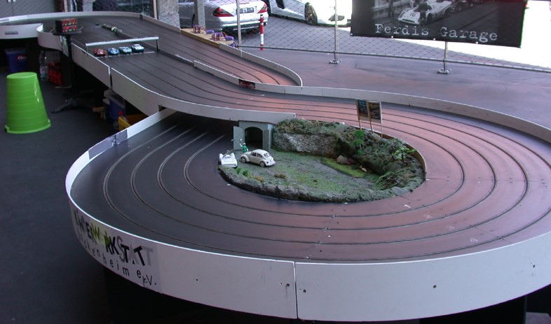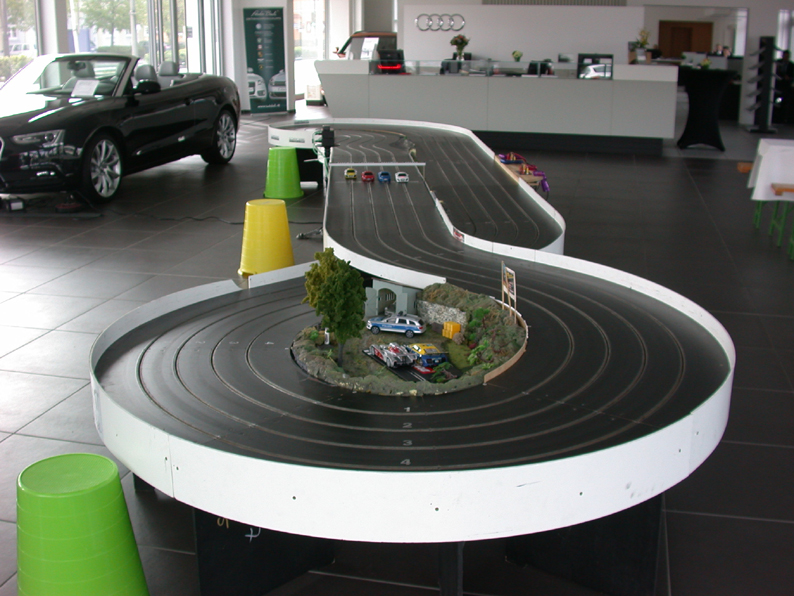 Auf 16,53 qm 20 m Vierspurbahn mit sich öffnenden und schließenden Kurven.