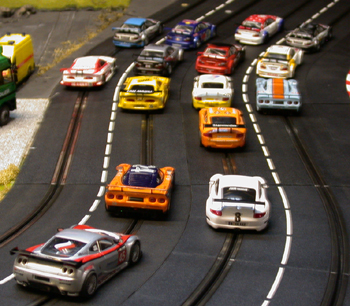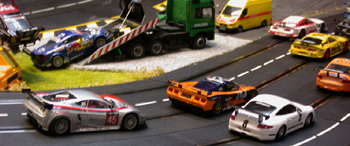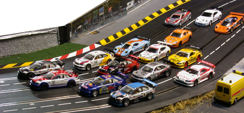 Nach wie vor im Einsatz. Die meisten dieser Ninco-BMWs sind seit Beginn der Kurse im Einsatz. Seit Anfang 2005 fahren sie zuverlässig im Kreis, ohne weitere Anfälligkeiten. Demnächst werden die Getriebe erneuert, dann sind sie bestimmt wieder wie neu. |